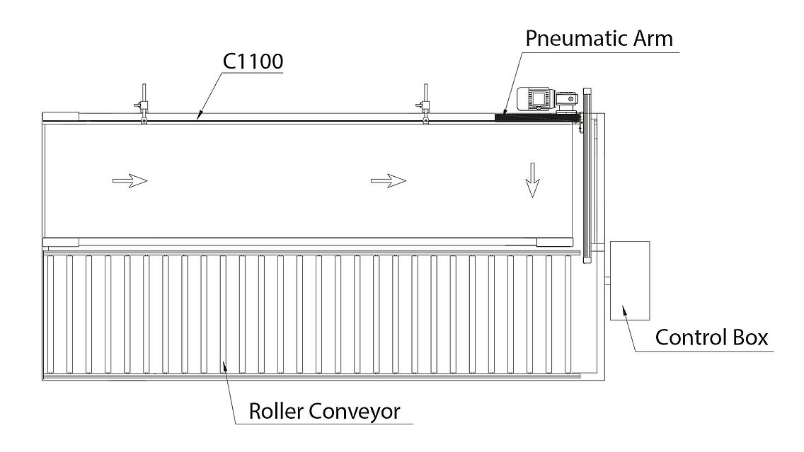 Sensor | 1 photocell/refracting to detect the presence of empty box 3 limit switches (box in the filling position, position of pneumatic arm) |